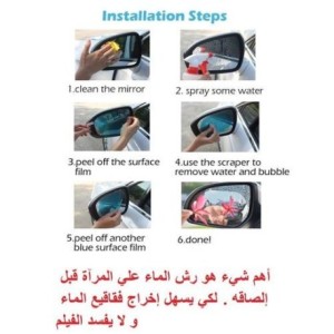 Installation facile: Nettoyez le miroir pour vous assurer qu’il n’y a pas de poussière Vaporisez de l’eau uniformément sur le miroir Arrachez la couche transparente avec l’étiquette n ° 1, vaporisez de l’eau sur la surface du film, collez-la au miroir Ajustez-le à la bonne position Mettez au rebut l’eau, les bulles d’air et l’humidité avec la carte Enfin, déchirez le film protecteur bleu avec la languette n ° 2