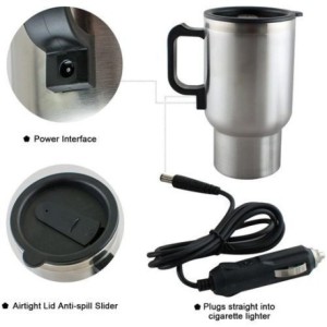 Voulez-vous boire un café chaud, du lait ou du thé pendant que vous conduisez n'importe quand et n'importe où? Maintenant, nous vous recommanderons une tasse chauffante électrique pour voiture en acier inoxydable 12V. Seulement pour mettre la tasse sur le porte-gobelet de votre voiture et brancher le chargeur de voiture dans l'allume-cigare de la voiture pour garder votre boisson au chaud pendant que vous allez. C'est vraiment un merveilleux compagnon de voyage pour votre choix. - Couleur: principalement argent. - Matériau: acier inoxydable de qualité alimentaire. - Capacité: 14OZ (environ 400 ml). - Tasse chauffante électrique pour voiture 100% neuve et de haute qualité. - Conçu de manière ergonomique, convient à la plupart des porte-gobelets de véhicule. - Fonction chaleur et pratique, maintient une température de 60 ?. - Alimenté par DC 12V dans la voiture avec câble adaptateur de prise de cigarette, fusible intégré, en toute sécurité! - Avec le couvercle de sécurité ouvert / fermé, peut garantir que l'eau potable ou l'eau ne débordera pas. - Évitez tout contact direct avec le liquide sur l'adaptateur de prise. - La tasse de voiture 12V ne réchauffe pas les boissons froides. - Ne convient pas au lave-vaisselle, essuyez avec un chiffon humide.