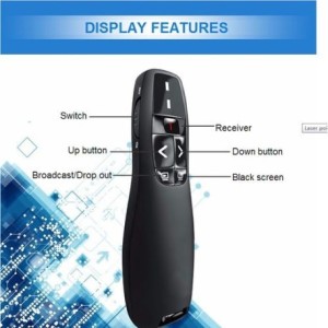 PRINCIPALES CARACTÉRISTIQUESPRINCIPALES CARACTÉRISTIQUES Plug and Play : Avec récepteur sans fil, il n'y a pas de logiciel à installer Le Longue portée : La technologie 2.4G permet des présentations efficaces jusqu'à 15 m Haute compatibilité : Avec Windows 2000, XP, Vista, Win7, Win8, MacOS, Linux Prend en charge : Word, Excel, PowerPoint, ACD voir, Web, etc., avec la fonction de page haut et bas VENDU AVEC LE PRODUIT