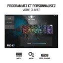 PRINCIPALES CARACTÉRISTIQUESPrincipales caractéristiquesClavier AZERTY pour gamer104 Touches Slim semi-mécanique membraneAnti-Ghosting 26 touchesTouches dédiées : Molette multifonction 2 en 1 : Audio et Light + 3 Touches d'Accès directLogiciel de réglages avancés (Téléchargeable en ligne)Touches Raccourcis Multimédia x 12Rétro-éclairage RGB Rainbow : 2 Zones (Touches + Châssis) avec 4 Effets prédéfinis + On/OffTouches Windows DésactivableExcellente ergonomieRétro-éclairage RGBClavier réglable en hauteur : 1 positionInterface USBMatériau(x) Métal anodisé / Plastique ABSLongueur du câble : 1.6 mDimensions : 440 x 135 x 35 mmPoids : 500 gCompatible Windows XP / Vista / 7 / 8 / 10