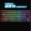 FORMAT 65% COMPACT : toutes les fonctionnalités d’un clavier gamer dans un design plus petit, un format tkl (teen keys less) sans pavé numérique avec seulement 85 touches. elite k70 est conçu pour vous laissser plus d’espace et plus de liberté de mouvement à votre souris. 3 MODES DE CONNEXION : sans fil avec les technologies rf 2.4 ghz, bluetooth et filaire avec le câble usb détachable inclus. en mode bluetooth, vous pouvez connecter jusqu’à 3 appareils différents. ainsi vous pourrez l’utiliser sur votre smartphone, ordinateur portable et tablette sans à avoir à le reconnecter à chaque fois. ANTI-GHOSTING 25 TOUCHES : evitez tout soucis de combinaisons de touches involontaires, la fonction anti-ghosting vous permet de presser plusieurs touches en même temps sans provoquer d’erreurs d’interprétation ! une fonction indispensable pour gagner. AUTONOMIE PARFAITE : avec sa batterie lithium rechargeable de 1850 mah, elite k70 offre une autonomie confortable : 35 heures non stop avec son rétroéclairage rgb et plus de 170 h sans. pour le recharger, branchez le câble usb-c inclus. PIMP MY KEYS : luminosité réglable, vitesse des effets personnalisable... elite k70 offre 16 modes de rétroéclairage : 1 7 couleurs différentes et 8 effets rgb ! illuminez votre setup, le rétroéclairage se configure directement sur le clavier avec des combinaisons de touches ultra simples. FAQ : pour réinitialiser votre clavier, c'est simple ! pressez fn + echap pendant quelques secondes et le tour est joué. VENDU AVEC LE PRODUIT 1 x Clavier ELITE-K701 x Nano récepteur USB1 x Cable USB-C1 x Guide d'installation rapide DESCRIPTIF TECHNIQUE SKU: SP379EA0YEE3KNAFAMZ Modèle: CLA-EK70RF Poids (kg): 0.6 Couleur: Noir