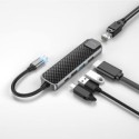 PRINCIPALES CARACTÉRISTIQUESPRINCIPALES CARACTÉRISTIQUES . Matériau : alliage de zinc + ABS + panneau acrylique. . Tailles : 110*30*14.2mm. Longueur du câble 135 mm. Poids 80,7g. . Interface : Type-C mâle vers HDMI + USB3.0 + USB2.0 + RJ45 + PD. . Prend en charge la résolution 4K / 30Hz. La prise femelle de type C prend en charge la transmission de données. . Prise en charge maximale de PD 60W (20V / 3A). Le port Ethernet prend en charge le réseau 100M. . Prend en charge une partie de la fonction OTG des téléphones mobiles / tablettes de type C. Prise en charge de la . connexion d'un ordinateur portable à un téléviseur HD/projecteur/moniteur, câble réseau (compatible avec la plupart des systèmes d'exploitation du marché, tels que Windows et Mac OS). VENDU AVEC LE PRODUIT 1X ADAPTATEUR