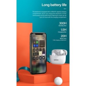 PRINCIPALES CARACTÉRISTIQUESPRINCIPALES CARACTÉRISTIQUES Marque: Lenovo Modèle: XT90 Couleur: blanc Version Bluetooth: 5.0 Distance de transmission: 10m Gamme de fréquences: 20-20khz Capacité de la batterie de la boîte de chargement: 3.7 v 300 mah Capacité de la batterie du casque (chacun): 3,7 v 35 mah Autonomie du boitier: 25 heures Temps de charge du boitier: 1,5 heure Temps de travail: environ 4 heures (selon le volume de la musique) Fonctions: pour jeu vidéo, pour téléphone portable, casque HiFi, sport Fonctionnalités: Avec microphone, prise en charge Apple Siri, suppression active du bruit Décodage Audio: AAC, SBC Compatible avec le système: iOS/ANDROID VENDU AVEC LE PRODUIT 2 * Bluetooth casque1 * étui de charge1 * câble USB1 * Manuel de l'utilisateur3 * bonnets de casque (taille S, M, L) DESCRIPTIF TECHNIQUE SKU: LE018EA0W1RVONAFAMZ Modèle: XT90 Poids (kg): 1 Couleur: blanc