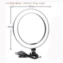 ?ANNEAU DE LUMIÈRE LED DIMMABLE PUISSANT?Conception spécial SMD LED qui fournit moins d'ombre et même l’ éclairage pour aider à parfaire votre peau et rendre votre regard propre avec des yeux brillants.-?USAGES MULTIPLES?Conception combine le support de téléphone et la lumière de l'anneau selfie ensemble. LED Ring Light est un outil professionnel parfait pour les maquilleurs , le streaming en direct, les youtubers, l’enregistrement vidéo, l’enseignement en ligne, la manucure, le tatouage sourcil, le coiffage, les photos de selfie, le tournage, le vlogging de paysages sombres, Lay plat, tournage, l'enseignement en ligne, les paysages sombres vlogging etc-?PARTENAIRE PARFAIT?En tant que meilleur partenaire des youtubers, des photographes, des maquilleurs, cette bague lumineuse LED peut vous aider à attirer davantage d'adeptes et de goûts en Embellissant votre peau. La lampe annulaire de beauté offre un éclairage doux, presque sans ombre. cela aide à éliminer les imperfections de la peau et donne au visage de votre sujet un aspect frais et propre. éclairer vos yeux. La forme de l'anneau rend une belle prise de lumière dans vos yeux.-?LUMINOSITÉ RÉGLABLE?Choix de 3 couleurs pour l’éclairage . (Blanc, jaune chaud et blanc mat) La température de couleur et la luminosité sont réglables par bouton . C'est l'éclairage de jour variable parfait pour éliminer toutes les ombres peu flatteuses , faire votre peau brillante. Chaque mode d'éclairage a 10 luminosité réglable au choix, répondre à tous vos besoins dans des circonstances différentes- ?Trépied Réglable Stand?LED anneau de lumière est extensible de 0.25m à 2.10 m, il suffit de verrouiller à la longueur désirée pour votre utilisation préférée, vous pouvez le tenir sur le sol ou tout simplement mettre sur votre table pour votre commodité-? ROTATION à 360° ?360 degrés de rotation facile pour vous pour trouver l’angle approprié. Facile à utiliser: Presser les bras ouverts ensemble pour élargir le bras automatiquement et mettre le téléphone, appuyez sur le téléphone pour relâcher le bouton sur le dos et le téléphone sera serré sur l’appareil. -?CONCEPTION PORTABLE?La bonne taille, facile à transporter, ne limite pas votre utilisation, facile à installer en même temps . Fabriqué en alliage d'aluminium, réglable et portable.- ?Sécurité et protection des yeux ?Les ampoules à LED sont utilisées avec une alimentation en courant alternatif à basse tension, courant constant,faible perte de puissance et faible de chaleur. L'uniformité de la luminosité et une lumière douce, aucun éblouissement, aucun rayonnement ultraviolet et infrarouge, protège vos yeux.-?ALIMENTÉ PAR USB?Le port USB rechargeable pour ordinateur de bureau à fonctionne avec plusieurs périphériques: ordinateur portable, ordinateur, chargeur secteur, chargeur USB etc. Prenez des selfies et des vidéos à tout moment, n’importe où