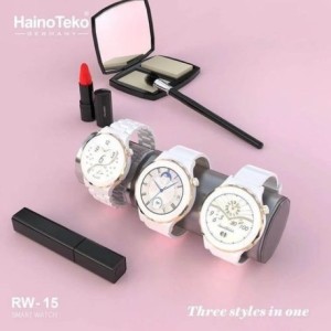 Haino teko RW 15 :Anneau de montre en alliage d'aluminium double couleur whitec + Gold + boîtier en fibre de carbone 5d + Triple bracelet : 1 Silicone + 1 cuire + 1 Ceramice Affichage de l'heure / horloge, pas, calories, distance, sommeil, caméra 24 heures de détection continue de surveillance de la fréquence cardiaque, test de sommeil mode sport : course en plein air, marche en plein air, course à pied à l'intérieur, marche intérieure, randonnée, stepping, conduite en plein air, conduite à l'intérieur, machine elliptique, réveil du rameur, chronomètre, compte à rebours, rappel sedentaire, atteindre les objectifs, déconnecté, trouver un téléphone, tourner le paquet poignet dimensions : 9,3 x 9,3 x 4,6 cm ; 61,3 grammes La smartwatch RW-15 dispose d'un magnifique écran couleur tactile de 1,4 pouces. Il s'agit d'un écran haute définition avec un affichage net. Belle couleur, avec une résolution de 240 x 240 pixels. Il est cristallin et beau, protégé par un verre incurvé qui prolonge son bord jusqu'au corps en métal.FONCTIONNEMENT DU BOUTON DE DÉFILEMENT