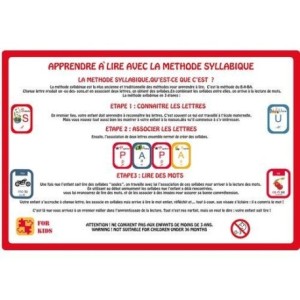 Jeu éducatif FORKIDS pour apprendre à lire avec la "METHODE SYLLABIQUE" LA METHODE SYLLABIQUE : c'est la méthode la plus ancienne et traditionnelle des méthodes pour apprendre à lire ,c'est la méthode du B-A-BA.chaque lettre produits un son ,en associant plusieurs lettres on obtient une syllabe, et combinant plusieurs syllabes entres elles on arrive à la lecture de mots. LA METHODE SYLLABIQUE en trois étapes: Etape 1 : Connaitre les lettres Etape 2 : Associer les lettres Etape 3 : Lire les mots C'est la que vous arrivez à un premier palier dans l'apprentissage de la lecture . Tout n'est pas parfait mais on peut le dire que votre enfant sait lire!