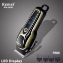 Fonctionnalités:- Peignes de positionnement intelligentsIl y a 4 peignes de guidage réglables (3mm / 6mm / 10mm / 13mm) de longueur de coupe et de faire toutes sortes de cheveux de longueur facilement.- Levier conique réglable par le pouceLa lame précise est réglable pour la longueur de coupe de 1 - 3mm, vous pouvez choisir des cheveux coupés courts ou courts.- Tête de coupe sûreConçu pour offrir une performance pointue qui ne rouillera pas vos cheveux, coupez-le toujours avec soin et garantissez une durabilité élevée.- Insérer le remplissage amphibieVous pouvez brancher l'adaptateur d'alimentation externe pour recharger l'alimentation intégrée en même temps, il peut également être utilisé directement.Caractéristiques:La tondeuse à cheveux Kemei KM - 1990 aux performances élancées est adaptée au tempérament de l'homme, avec des poils ras et des favoris.En outre, il ya un écran LCD sur le corps, qui vous permet de facilement couper vos cheveux avec l'affichage de l'électricité intuitive.Pendant ce temps, un levier de pouce variable pratique pour ajuster la conicité et la texture, offrant une performance lisse, rapide et précise sur vos cheveux.La description:Couleur: doréMatériau: ABS (Acrylonitrile Butadiène Styrène)Taille: Approx. 18,5 x 4,5 x 3cm / 7,28 x 1,77 x 1,18 ''Tension: 110-240VFréquence: 50 / 60HzPuissance: 5WTemps de charge: 3 heuresEn utilisant le temps: 120 minutesMode de nettoyage: Non étanche, propre en nettoyant la brosse Emballage inclus:1 x tondeuse à cheveux1 x housse de protection de lame1 x adaptateur d'alimentation4 x peignes de limite (3, 6, 10, 13mm)1 x brosse de nettoyage1 x manuel de l'utilisateur en anglais1 x boîte d'emballageRemarque: La tondeuse et l'adaptateur d'alimentation ne sont pas étanches, veuillez les garder au sec, ne pas les tremper dans l'eau ou les utiliser dans un endroit humide.