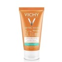 La crème onctueuse SPF 50+ Vichy Capital Soleil est un produit de très haute protection solaire conçu spécialement pour les peaux sensibles normales à sèches. Elle permet de protéger le visage des effets néfastes des rayons du soleil et du vieillissement cutané prématuré qui se manifeste par l’apparition de rides et/ou de taches pigmentaires. Cette crème solaire visage possède également une action sublimatrice et perfectrice puisqu’elle lisse et repulpe la peau tout en garantissant un hâle lumineux et uniforme.La formule de cette crème solaire Vichy s’appuie sur l’association de filtres solaires chimiques et minéraux qui garantissent une protection optimale. Ces filtres absorbent et réfléchissent les UVA et les UVB, les empêchant ainsi d’atteindre les cellules épidermiques et de provoquer des dommages. On retrouve également dans la composition de la crème onctueuse Vichy Idéal Soleil des agents hydratants, notamment de la glycérine et de l’acide hyaluronique, qui vont préserver la peau du dessèchement et de la déshydratation.Avec sa texture douce et soyeuse, la crème onctueuse SPF 50+ Vichy Idéal Soleil est un indispensable à avoir avec soi dès l’apparition des premiers rayons. Elle laisse la peau lisse, douce et souple et assure une grande sécurité contre les rayons.