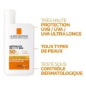 Anthelios UVMUNE 400 Fluide Invisible Protection ultime UVA Ultra-long 50 mlLa Roche-Posay Anthelios UVMune 400 Fluide Invisible Solaire Sans Parfum 50 ML SPF 50+ Est un fluide solaire visage à très haute protection solaire. Il est sans parfum. Il est destiné aux peaux intolérantes au soleil. Il convient également aux peaux sujettes aux taches pigmentaires. Ce fluide possède un écran solaire à large spectre et photostable des UVA (responsables du vieillissement cutané) et des UVB (responsables des brûlures et des rougeurs) et des UVA longs. Sa technologie brevetée de protection solaire associée à l'eau thermale et aux antioxydants a des propriétés apaisantes. Il procure même un confort aux peaux les plus sensibles.Pas de parfumTrès résistant à l'eau et à la transpiration.Ne laisse pas de traces blanches sur la peau.Technologie oculaire anti-piqûre.Formule plus respectueuse du milieu marin.