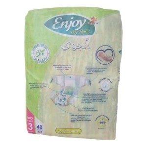 Type de produit : Couches pour bebe Marque : Enjoy Un sac contenant 40 pièces Numéro 3 MIDI 4-9 KG Made in Algérie