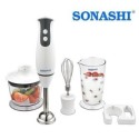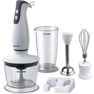 Marque : SONASHI Modèle : SHB-169 JBC Couleur : Blanc Accessoires standard : Pot en plastique de 700ml / Fouet / Hachoir de 500ml / Support mural / Mélangeur amovible Puissance : 300 w Alimentation : 220-240 v Tension : 50/60hz Points forts : Lame en aluminium amovible pour faciliter le nettoyage Protection contre une surchauffe du moteur Boitier robuste en moulage sous pression=