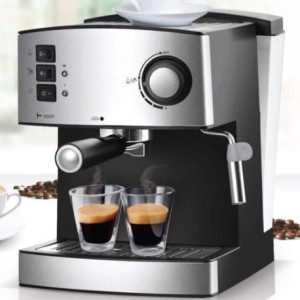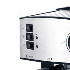 Puissance de 850W Capacité : 1,6L Pression de la pompe : 15 bars Porte Filtre (café moulu ou dosettes souples) Filtre pour 2 tasses Buse Vapeur : Préparer de délicieux cappuccinos, chauffer le lait et obtenir une mousse crémeuse, produire de l'eau chaude, pour le thé. Plateau chauffe tasses Bac d’égouttement amovible Réservoir translucide Trois Bouton et une manette tournante pour régler le degré de vapeur de la buse Alimentation : 220-240V, 50/60Hz=