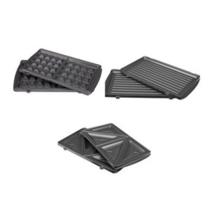 3 assiettes antiadhésives pour la confection de grill , Sandwiches & Waffles. Système de verrouillage pour une utilisation sûre et un contrôle automatique de la température. Conception épurée en acier inoxydable. Les plaques revêtues sont faciles à retirer, à remplacer et à nettoyer. Dimensions des feuilles: 22 x 13 cm. Il fonctionne à une puissance de 760 watts=