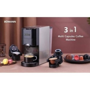 Marque : bomann Modèle : ES 1190 CB couleur : Noir gris Puissance de 1450 Watts Cafetie?re Multi’Caps Compatible Capsules : Nespresso / Dolce Gusto Et Café Moulu Compatible avec des capsules de cafe? ou de the? Re?servoir transparent de?tachable de 0.8L Pression a? la pompe 19 Bar Insertion et e?jection manuelle des capsules Ide?ale pour : Un cafe? serre?/long, Un chocolat, Un The?, Un Capuccino... Alimentation 220-240V, 50/60Hz=