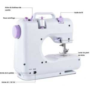 PRINCIPALES CARACTÉRISTIQUESPRINCIPALES CARACTÉRISTIQUES Matériau principal: ABS + métal Longueur de point: réglable Vitesse de couture maximale: 350spm Épaisseur maximale de couture: 2,5 mm Puissance: 7,2 w Entrée: 100-240V ~ 50 / 60Hz Sortie: batterie DC 6V 1200mA / 4AA (non incluse) Taille globale: 28 * 12 * 24 cm Emballage inclus: 1 x machine à coudre VENDU AVEC LE PRODUIT Machine zigzags DESCRIPTIF TECHNIQUE SKU: SA050HA0C3X7KNAFAMZ Modèle: JYSM-605 Poids (kg): 0.1 Couleur: Blanc Matériau principal: plastique solide