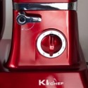Puissance 220-240 V, 50 Hz, 1200w. 8 réglages de vitesse (+ 0/1/2/3/4/5/6 Pulse) En fonte d'aluminium, le crochet d'agitation permet le mélange uniforme d'une quantités de pâte importante En fonte d'aluminium, le crochet pétrisseur plus adapté pour les pâtes lourdes, CE levure ou Pâte a pain Fouet en acier inoxydable pour génoise légère et mousseuse blancs d'oeufs Mécanisme spécial d'engrenage robuste Bras multifonctions pivotant jusqu'a 35° Mécanisme de déverrouillage pour le bras multifonctions Circuit de sécurité Particulièrement facile à utiliser et à nettoyer Support antidérapant par ventouses Mandrin a serrage rapide pour tenir les outils=