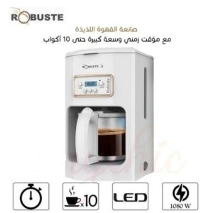 =Une tasse de café représente bien plus qu’un moment de pause, c’est votre petit rituel. Alors faites de ce moment une expérience unique avec la Cafetière programmable CFP10 de Robuste. Une machine à café ultra-compacte, associant élégance et innovation technologique. Minuteur pour vous réveiller avec une délicieuse odeur de café. La cafetière électrique CFP10 vous offre jusqu’à 10 tasses de café pour ne plus manquer de café lorsque vous êtes en familles ou avec vos amis. Avec un système stop-gouttes, arrêt automatique, afficheur LED, indicateur du niveau d’eau, éléments compatibles lave-vaisselle et un porte-filtre amovible. Préparez un café comme vous l'aimez!! Appréciez le goût d’un bon café corsé et parfumé, avec ce modèle indispensable de cafetière qui préserve la saveur de votre boisson favorite au petit-déjeuner !Pour un coût modéré, elle permet d'obtenir un café en grande quantité. Cette machine est prévue pour un usage facile et quotidien, tient peu de place en cuisine et reste parfaite pour les petits espaces. Economique en énergie, ce modèle peut être utilisé aussi souvent que vous voulez ! Si la préparation du café tient une place importante dans votre rituel de dégustation, choisissez cette machine pour un goût encore plus intense.=
