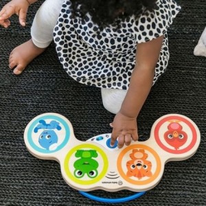 Vous appréciez Mozart pendant que votre enfant joue et découvre toutes les activités de ses Tambours magiks™, tout spécialement créés par Baby Einstein et Hape. Caressez les différentes touches représentant des personnages Baby Einstein et découvrez la magie technologique musicale des tambours. Ce jouet interactif permet de développer les aptitudes de votre future star. Bébé apprend à penser musique et devient créateur de ses propres oeuvres. Deux modes différents pour en profiter encore plus : avec le mode composition musicale, bébé peut rejouer ou créer ses propres mélodies. Avec le mode tambour et mélodies, bébé reproduit des titres classiques ou à son propre rythme. C'est parti pour des heures de diversion musicale en famille ! Amusez-vous avec bébé et jouez du tambour vous aussi. Et ne vous en faites pas si vous réveillez le petit frère ou la petite soeur! Avec le contrôle parental du son, vous pouvez baissez le volume quand vous voulez ou l'augmenter pour des sessions rock'n roll familiales. Avec les haut-parleurs haute définition, et quel que soit le volume des chansons, vous êtes sûrs que votre enfant suit le bon rythme. Détails Du Produit: