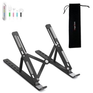 Support laptop Réglable Pliable en Aluminium de qualité supérieur avec design moderne, petit, robuste, et pratique.
