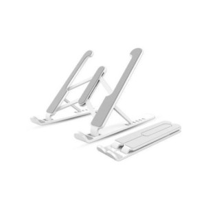 Support laptot Réglable Pliable en plastique de qualité supérieur avec design moderne, petit, robuste, et pratique. · CONCEPTION ERGONOMIQUE À 8 NIVEAUX DES YEUX : Le support réglable pour ordinateur portable élève votre ordinateur portable de 2,15” à 6” pour un niveau parfait des yeux, 8 choix de hauteur total, ce qui aide à corriger votre posture et à réduire les douleurs au dos, la raideur de la nuque, les douleurs au poignet et la fatigue des yeux. Très ergonomique et confortable pour lire et taper · PORTABLE ET INSTALLATION FACILE : Produit léger et solide , Petite taille, pliable, facile à transporter n'importe où, gain de place, il ne prend pas de place et peut glisser facilement dans le sac · COMPATIBILITE UNIVERSELLE : Le socle de l'ordinateur est compatible avec tous les ordinateurs portables jusqu'à 17 pouces, tels que pour MacBook Air / Pro, Google Pixel, Dell XIS, HP, ASUS, Lenovo ThinkPad, Acer, tablette, iPad, etc. . Soyez votre compagnon idéal à la maison, au bureau, à l'aéroport, au café et en plein air · ROBUSTE & PROTECTEUR : Fabriqué en alliage de plastique premium de 4 mm, il est assez robuste et peut supporter jusqu'à 5 kg de poids sur le dessus ; Avec 4 coussinets en silicone antidérapants sur le dessus et le dessous du support et 2 tapis en caoutchouc sur le crochet, il maintient votre ordinateur portable en place, protège le portable de tout risque de glissade et de rayure · DISSIPATION DE CHALEUR : Le matériau en alliage de plastique peut absorber et évacuer la chaleur facilement. L'angle d'inclinaison vers l'avant et la conception ouverte offrent une meilleure ventilation et plus de circulation d'air pour refroidir votre laptop pendant le fonctionnement. disponible en 3 couleurs différents : noir, Rose, blanc Voir l'annonce correspondante a votre choix sur notre boutique