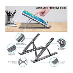 Support laptop Réglable Pliable en Aluminium de qualité supérieur avec design moderne, petit, robuste, et pratique.