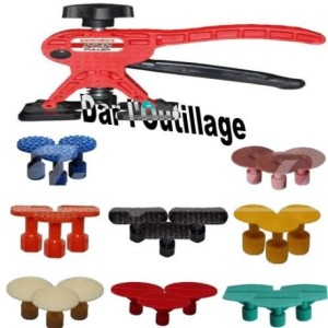 Utilisation: Ajuster la vis sur la pince de correction de dent en fonction de la profondeur de la dent,Placez l'appareil en plastique adapté à la profondeur et à la surface de la dent dans la rainure de la pince,Après avoir appliqué du silicone chaud sur la surface du capot pour être corrigé, tournez la vis sur la pince et appuyez sur l'appareil en plastique sur la surface de silicone chaude Une fois le silicone refroidi Corrigez la bosse avec de légers mouvements de compression.