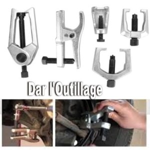 Outils recommandés: Cliquets pneumatiques Cliquets à main Clé à cliquet à dégagement rapide Clés à chocs Clé à cliquet Clé plate Pinces Clé à molette VENDU AVEC LE PRODUIT Contenu : 1 extracteur d'extrémité de biellette de direction (grande taille, en forme de C). 1 séparateur de joint de rotule. 1 extracteur de bras de Pitman (petite taille, en forme en C) 1 extracteur d'extrémité de biellette de direction (en forme de L). 1 extracteur de roulement intérieur.