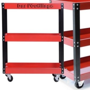Détails techniques : Dimensions totales (LxlxH) : env. 72x 37 x 67 cm Diamètre des pneus : env. 9,5 cm Capacité de charge par chariot : 100 kg (charge de surface) Poids par chariot : env. 10kg Matériaux : acier, plastique VENDU AVEC LE PRODUIT Contenuchariots d’atelier