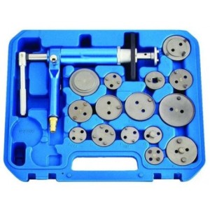 PRINCIPALES CARACTÉRISTIQUESPRINCIPALES CARACTÉRISTIQUES Kit universel pour pivoter et repousser les pistons de frein de pratiquement tous les véhicules de tourisme Pour repousser les pistons de frein à l'aide de l'air comprimé Levier à main pour la fonction de rotation, à gauche et à droite Convient également pour étriers de frein avec fonction frein à main Pour les véhicules suivants : Alfa Romeo, Audi, Citroën, Fiat, Ford, GM Honda, Jaguar, Lancia, Land Rover, Mazda, Nissan, Peugeot, Renault, Rover, Saab, Seat, Subaru, Toyota, Volvo, VW Comprend 21 adaptateurs à repousser, entre autres, des adaptateurs 3 et 4 tenons pour les véhicules plus récents Pression d'utilisation 5 à 8 bar max.